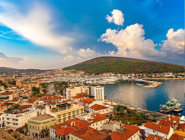 این شهر در سواحل عمیق دریای اژه در خلیج ازمیر قرار دارد. اين شهر از کهن ترین شهرهای دنیا در منطقه مدیترانه است و قدمتی در حدود پنج هزار سال دارد. کاوشهای باستان شناسی در این منطقه نشان میدهد که سکونتگاههای امروزی این شهر بر ویرانههای شهر تروی بنا شده است. همچنين سفالينههاي مربوط به هزار سال پیش از میلاد در شهر ازمیر یافته شده است.
